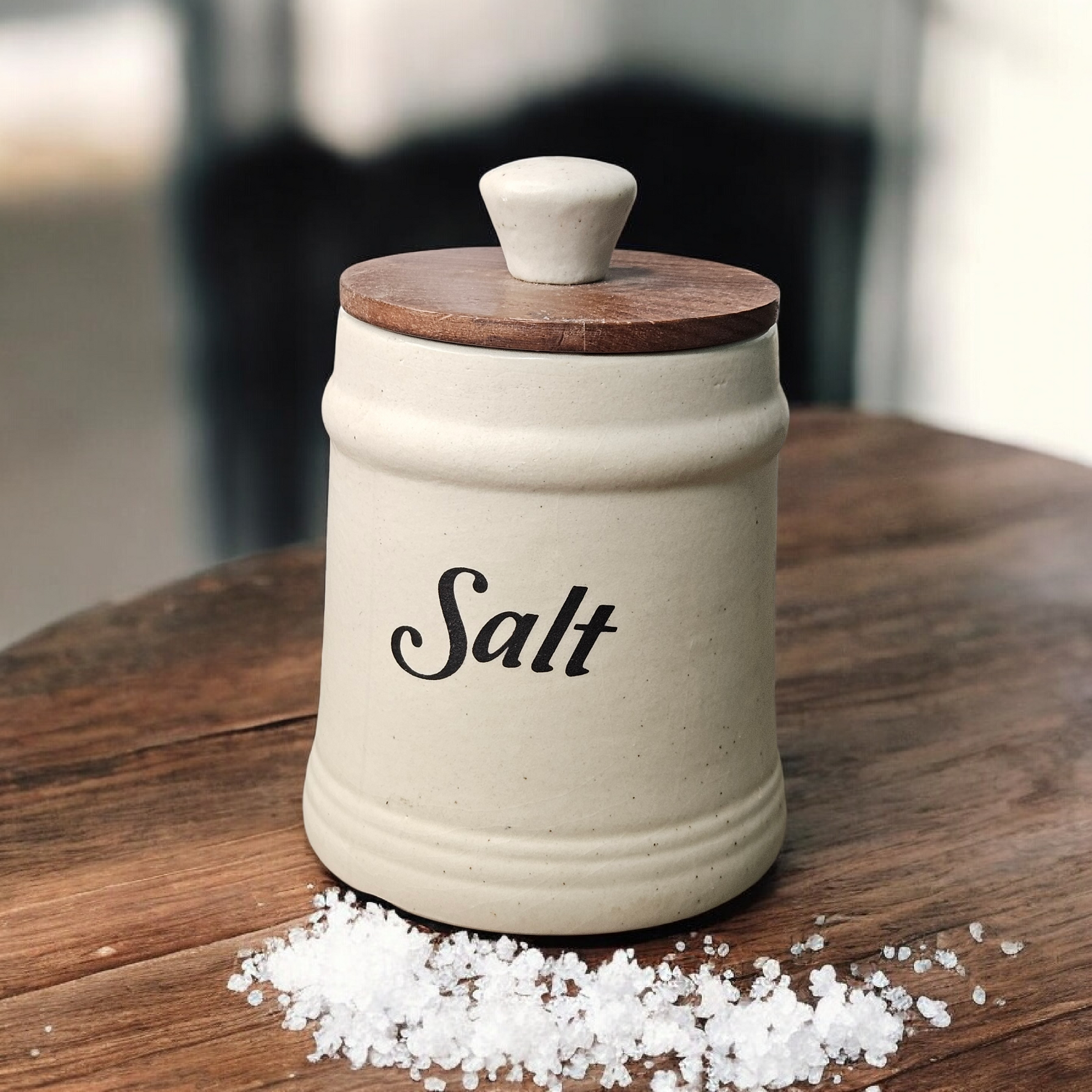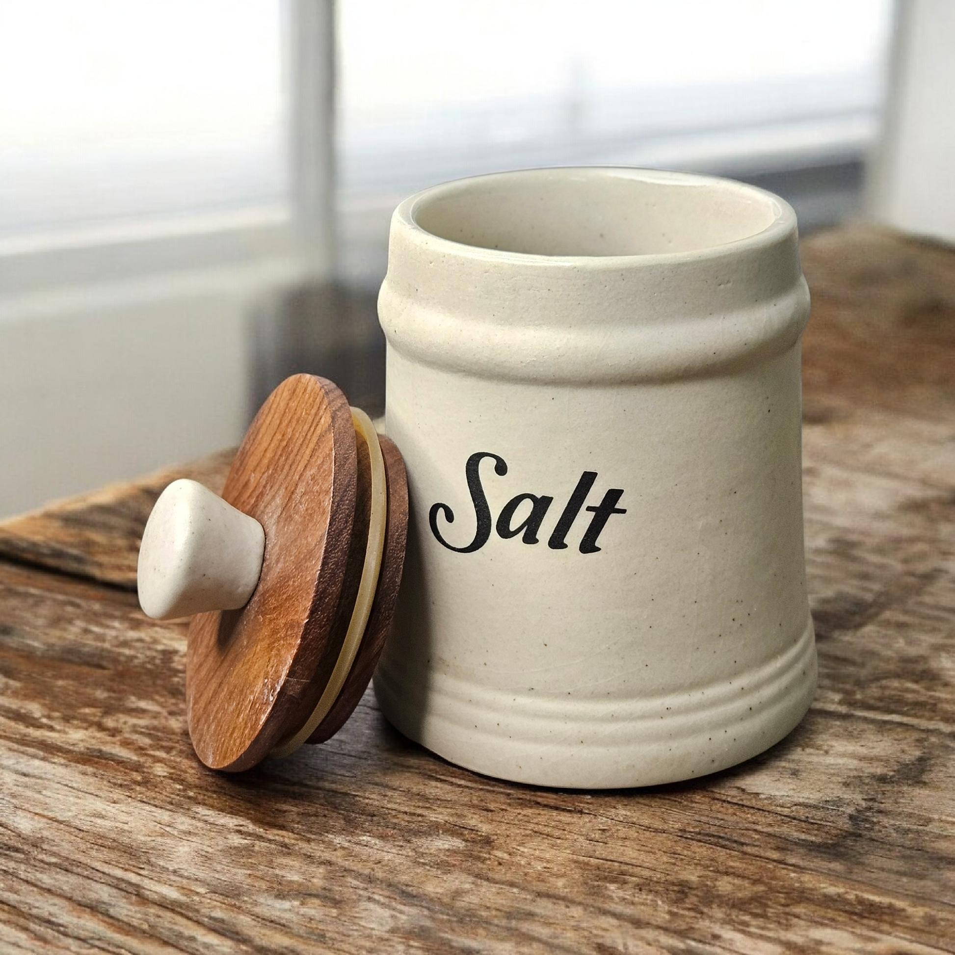 🍯 Salt Air-Tight Ceramic Jar with Wooden Lid – 380 ml