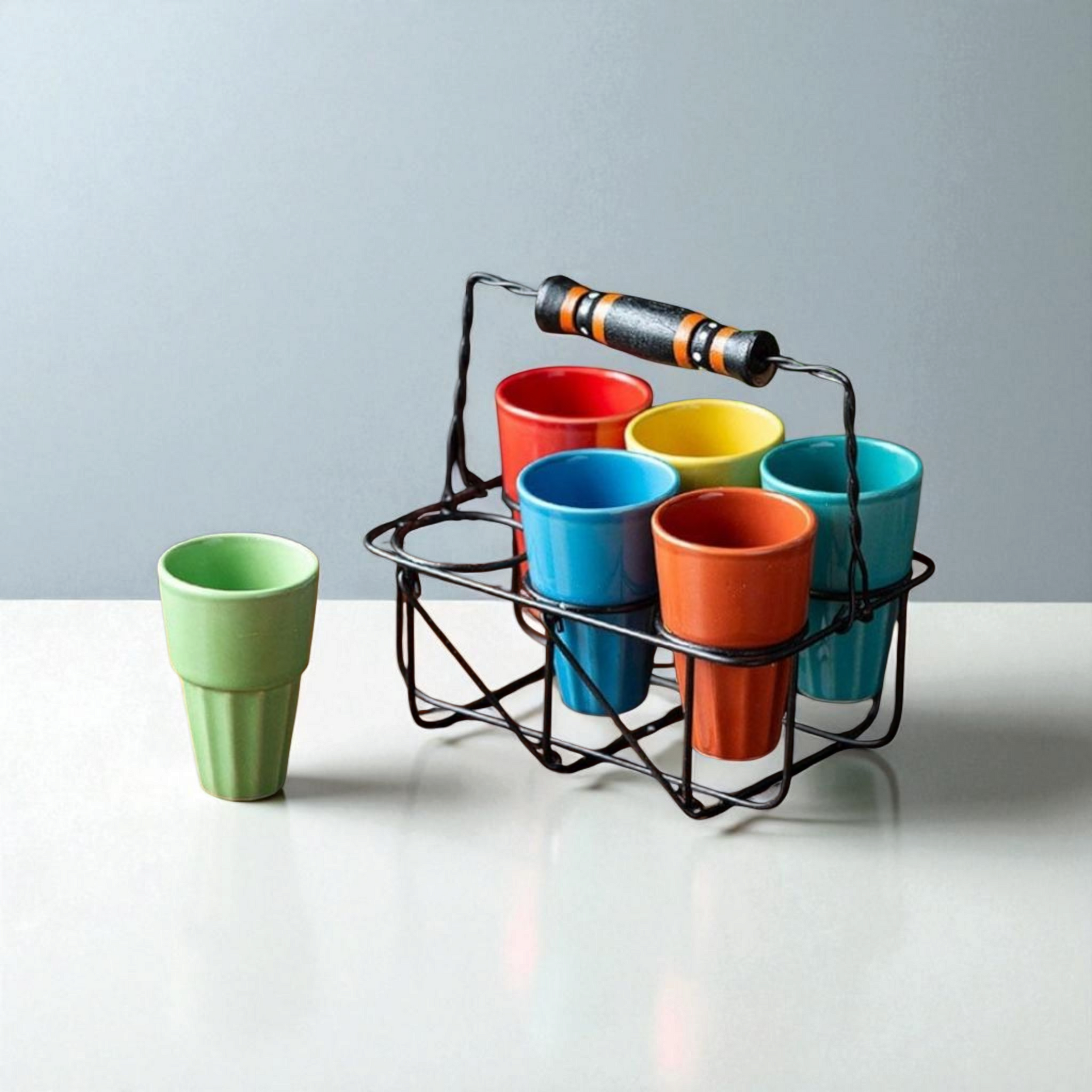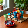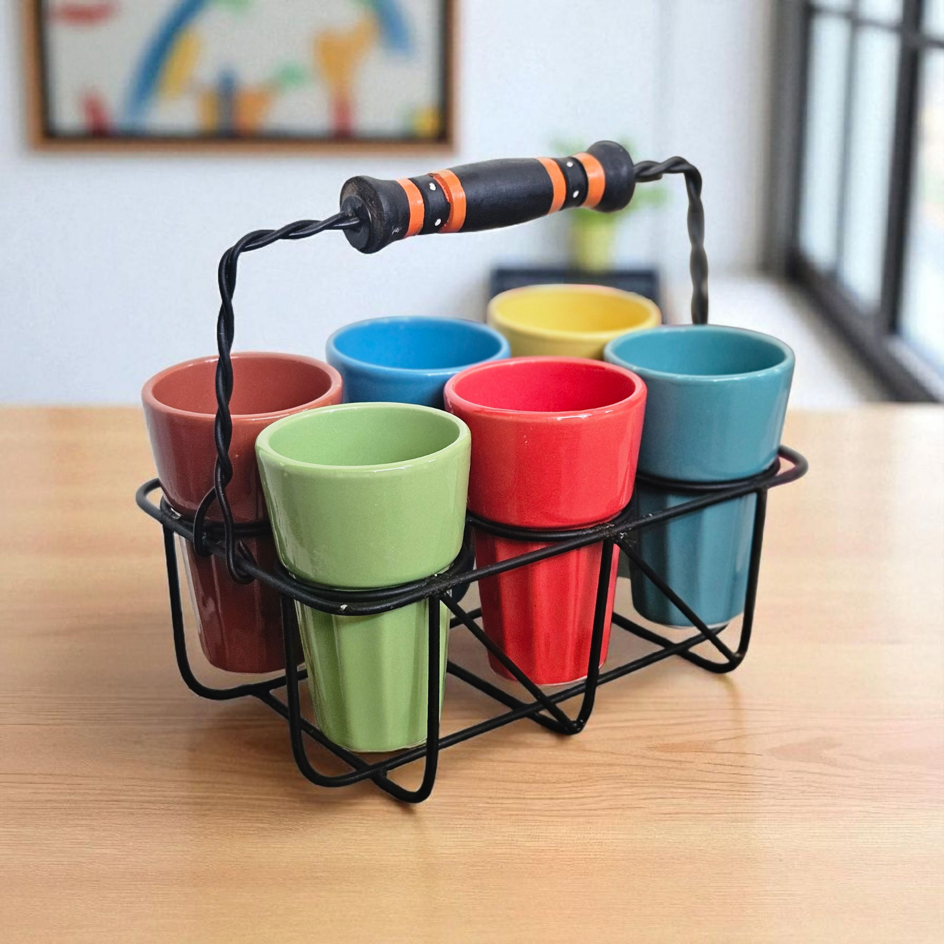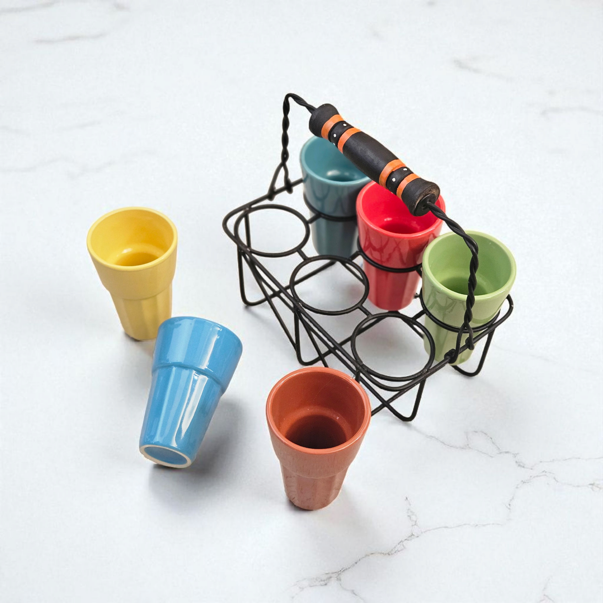 π΅ Set of 6 elegant tea cups with sturdy iron stand