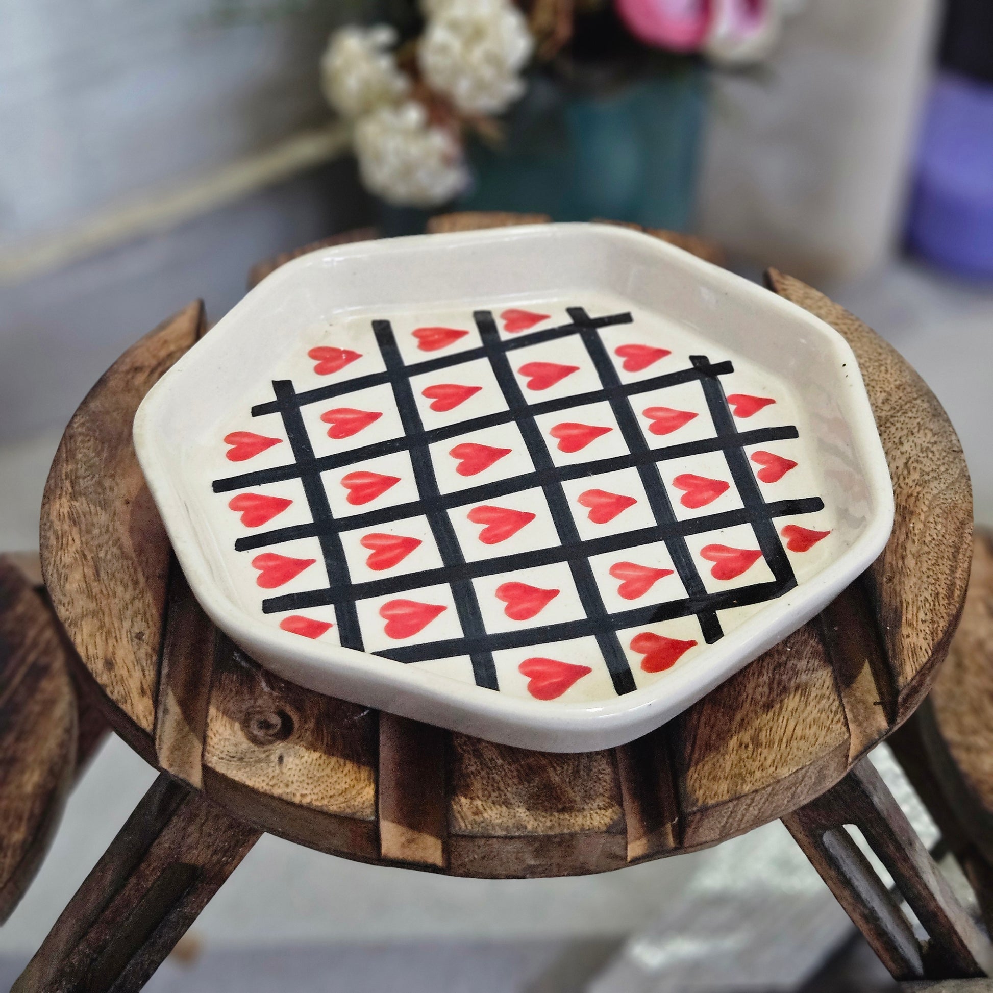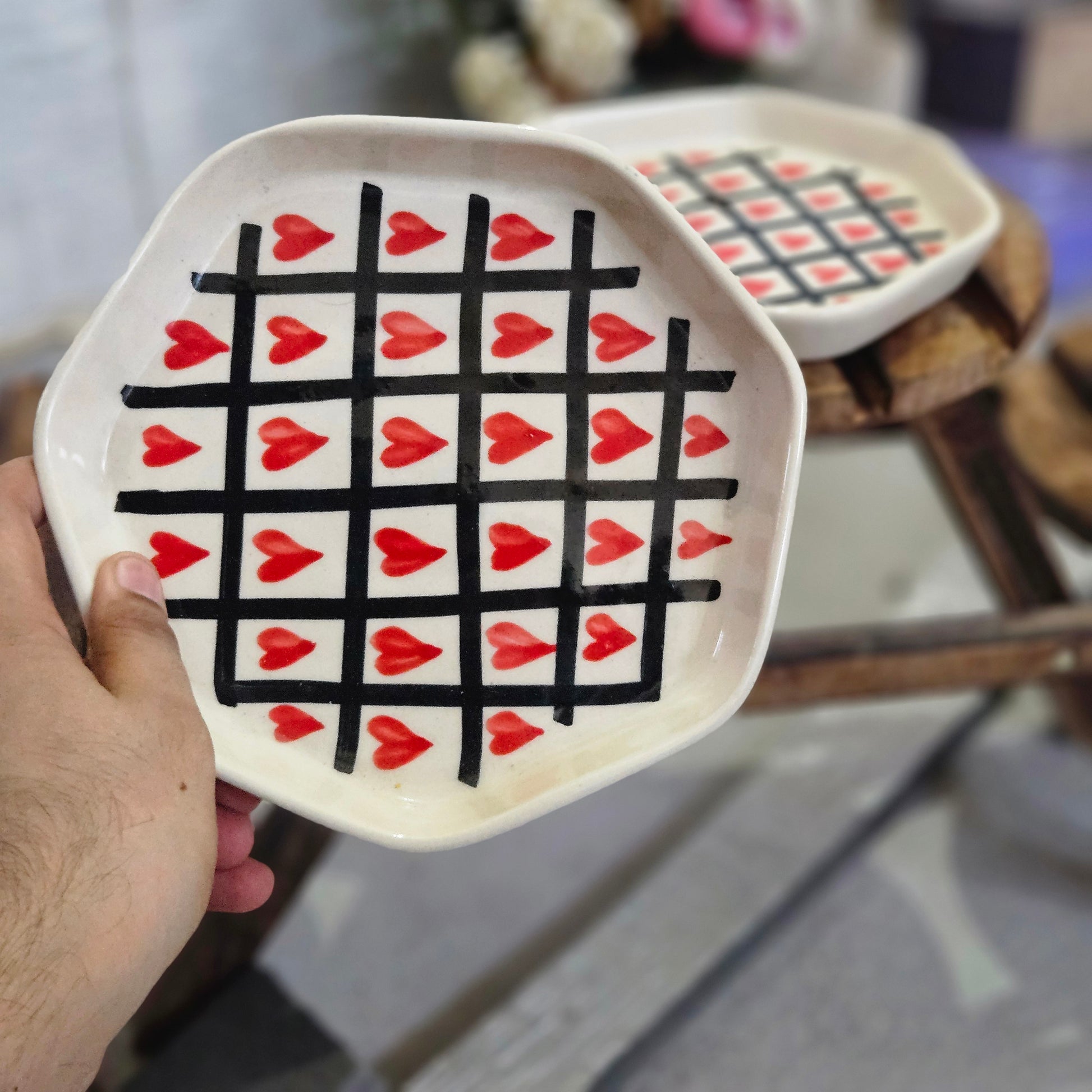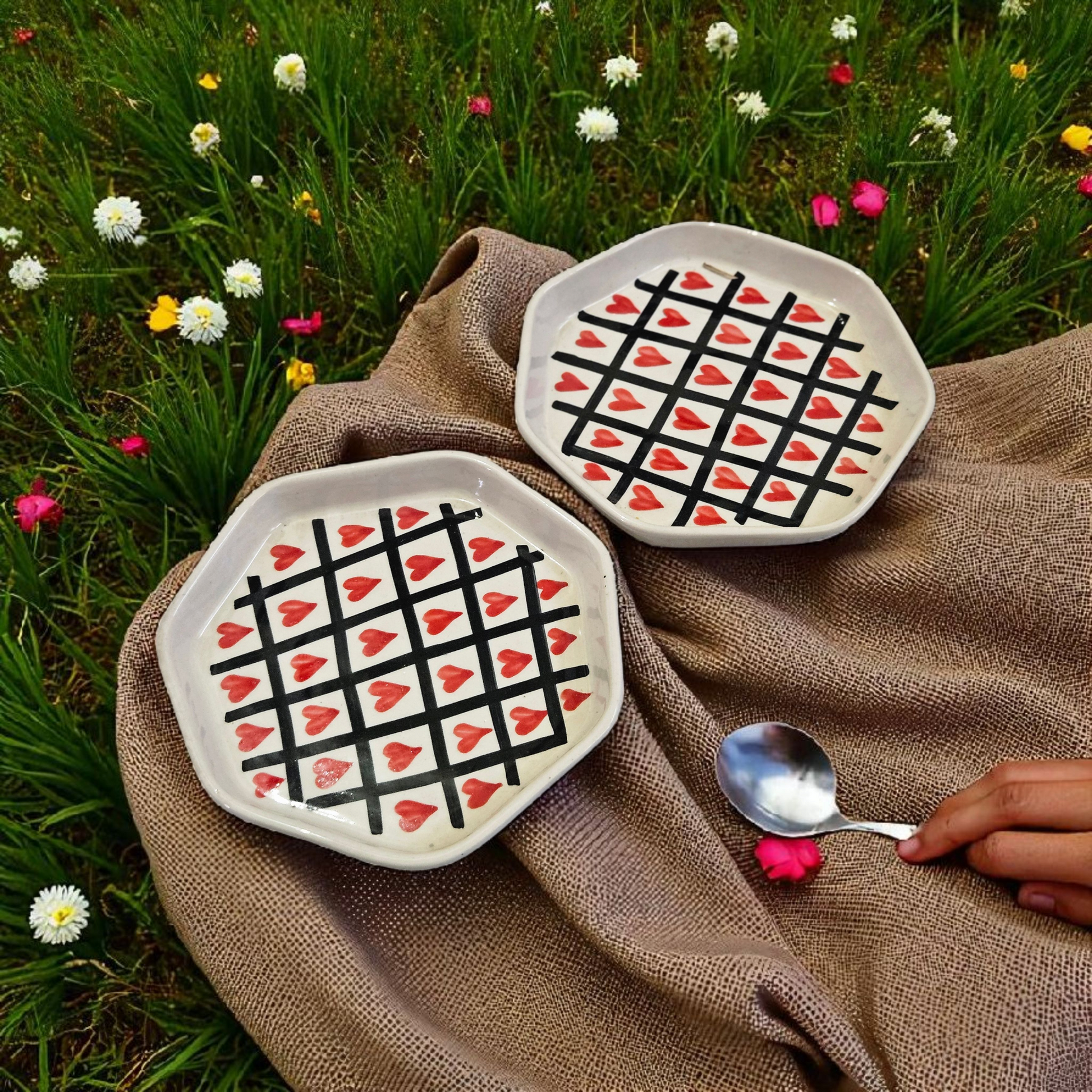 Black Check Heart Salad Plate – 7 Inch πŸ–€βœ”οΈπŸ₯—