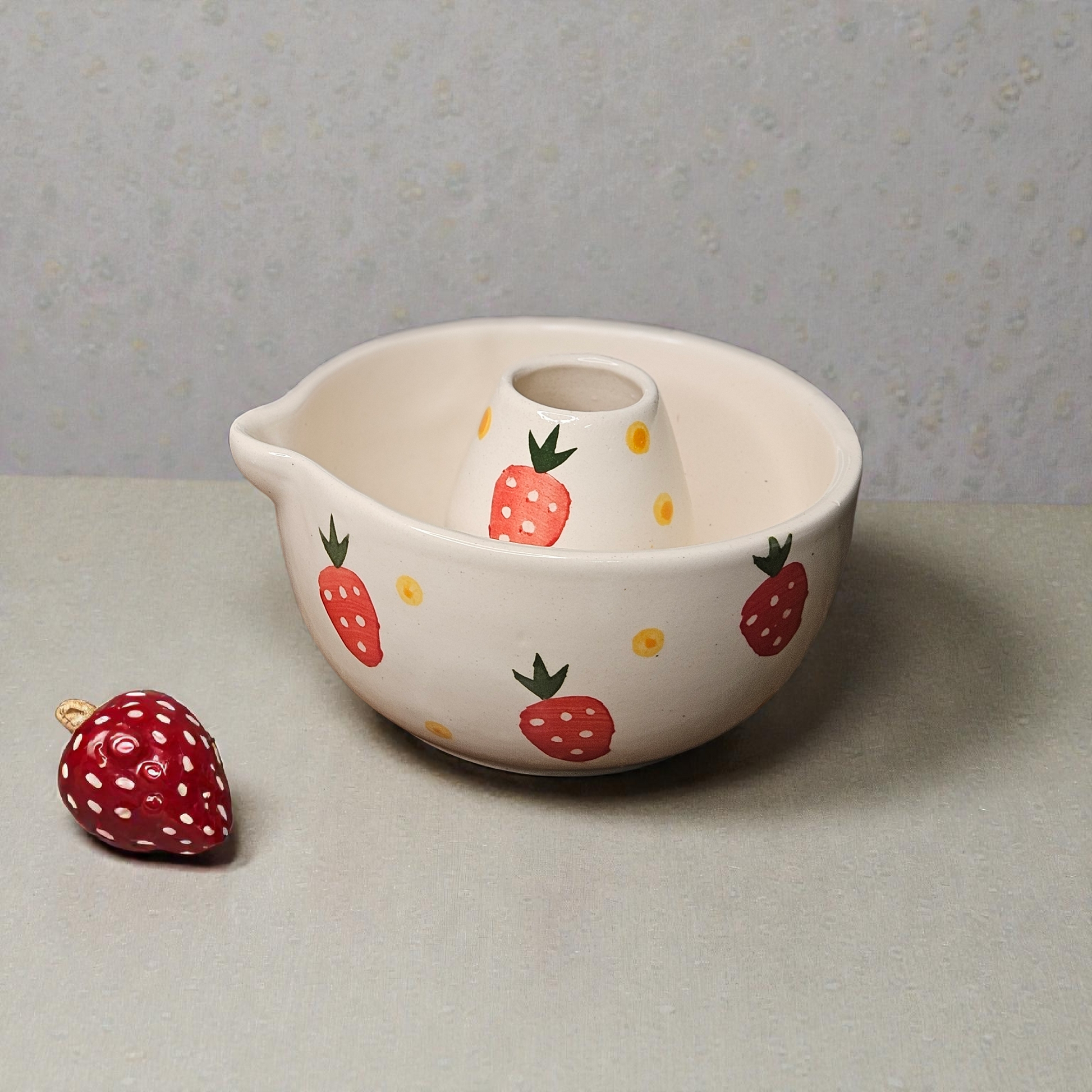 MATCHA BOWL WITH HOLDER – STRAWBERRY PRINT | 5 INCH CERAMIC