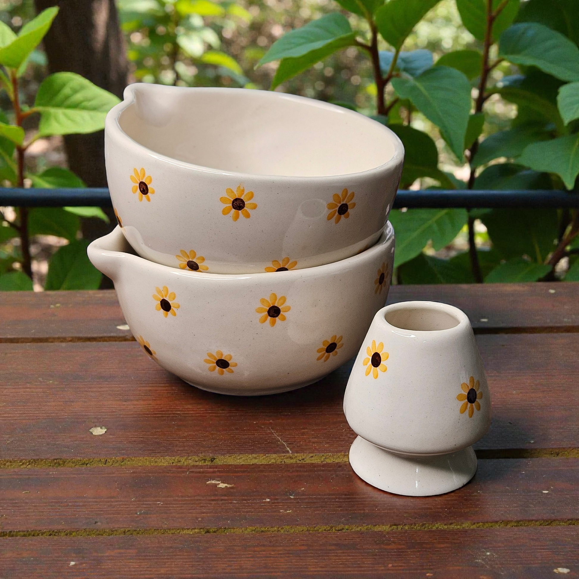 MATCHA BOWL WITH HOLDER – SUNFLOWER PRINT | 5 INCH CERAMIC